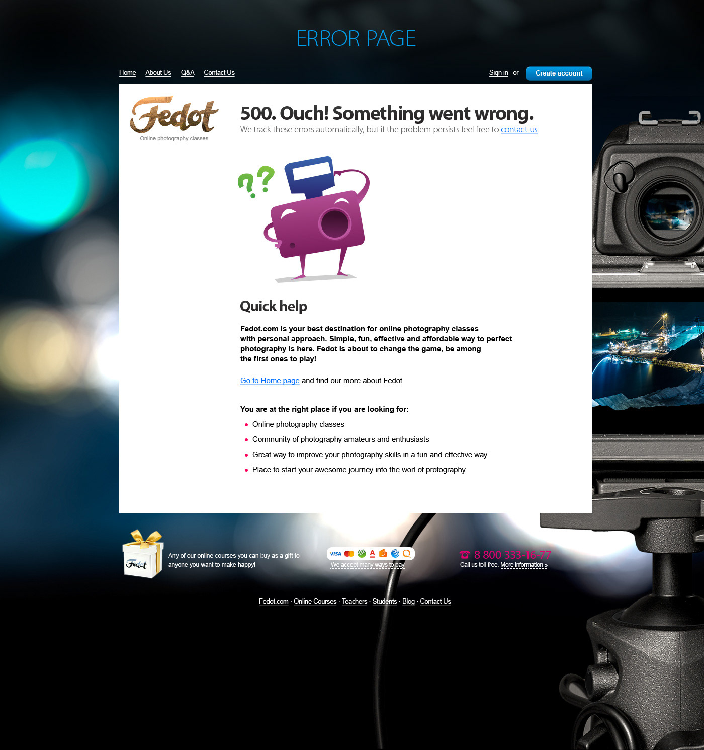 Web site design for online photography courses startup Fedot.com