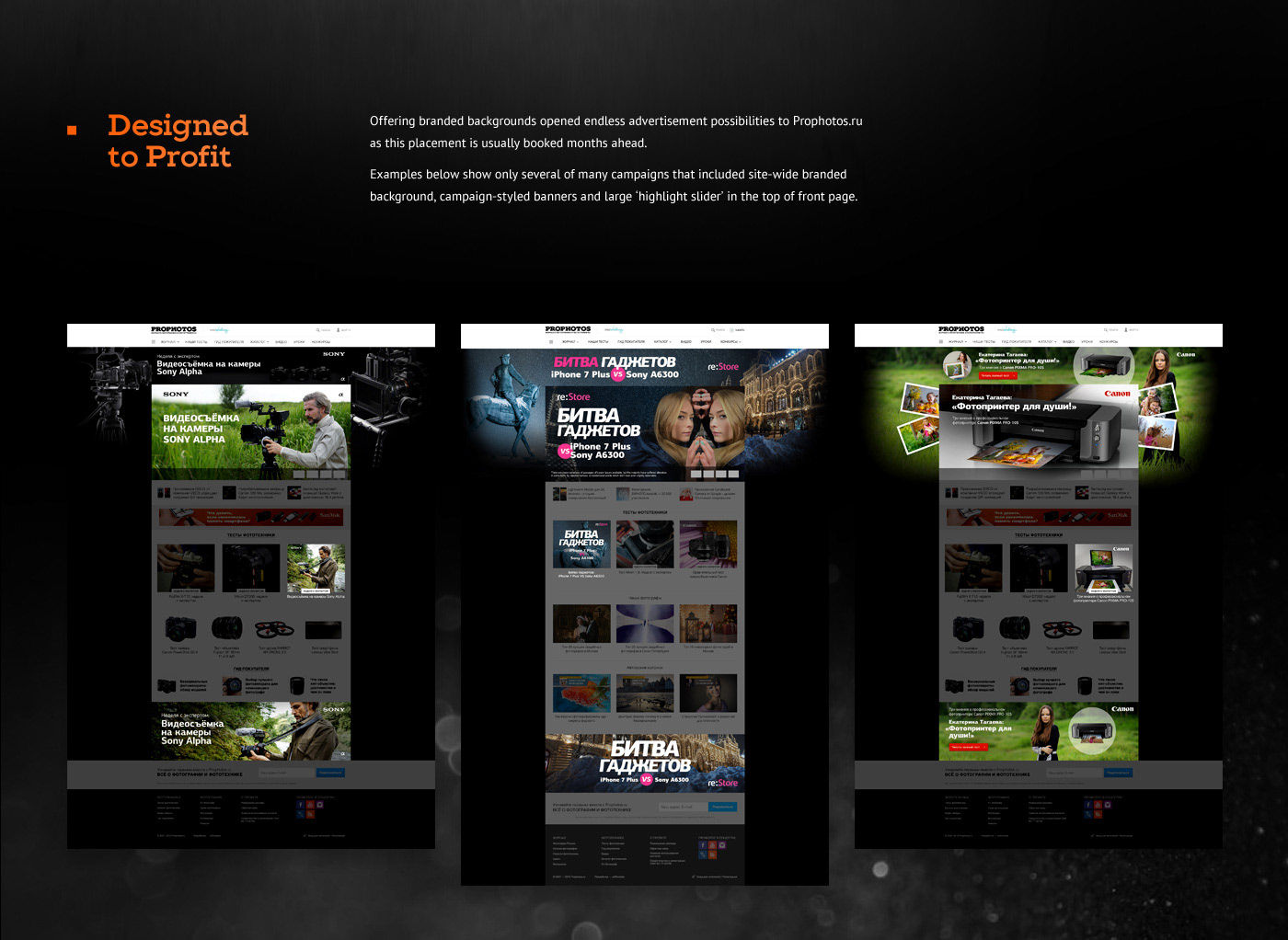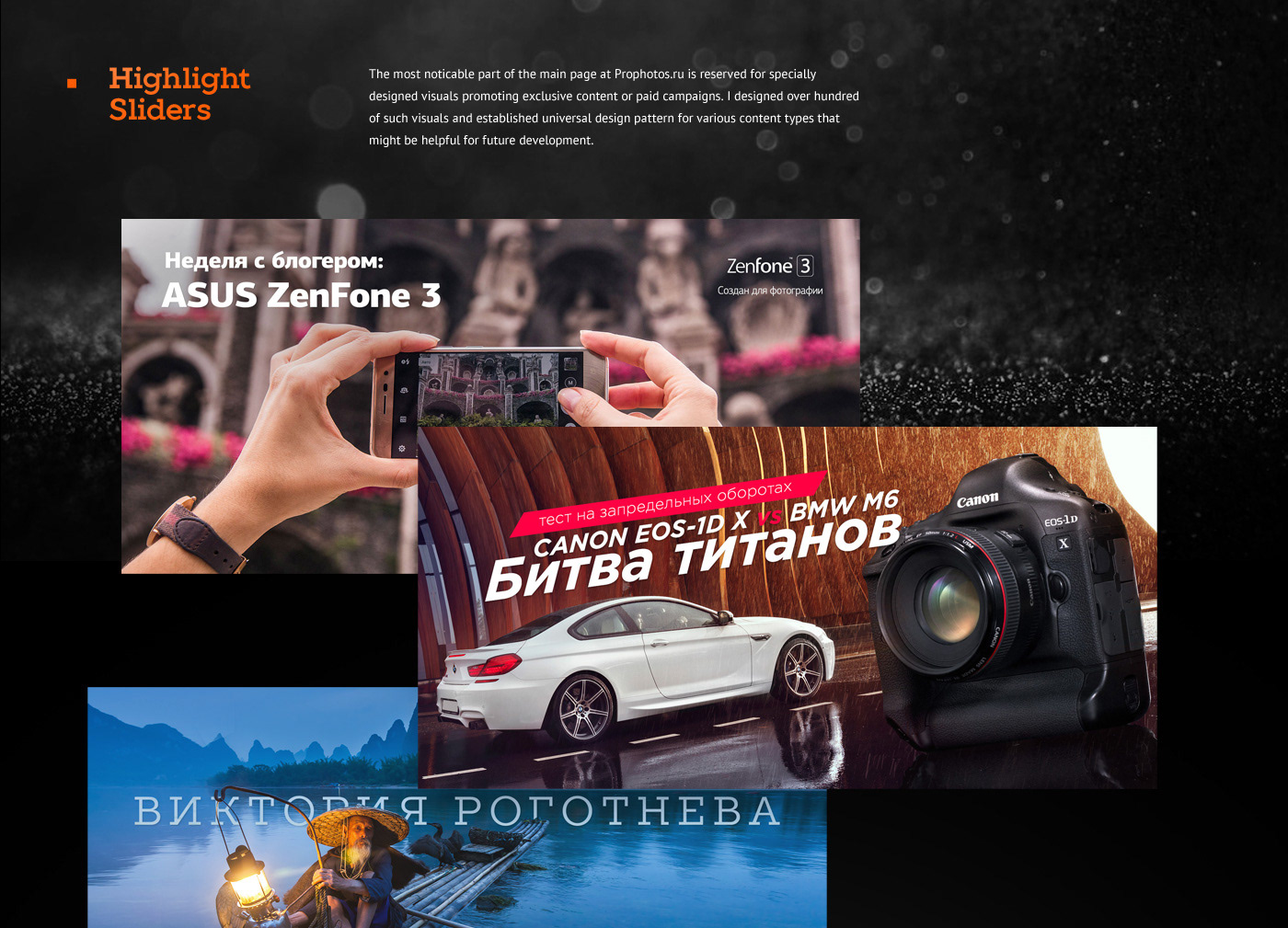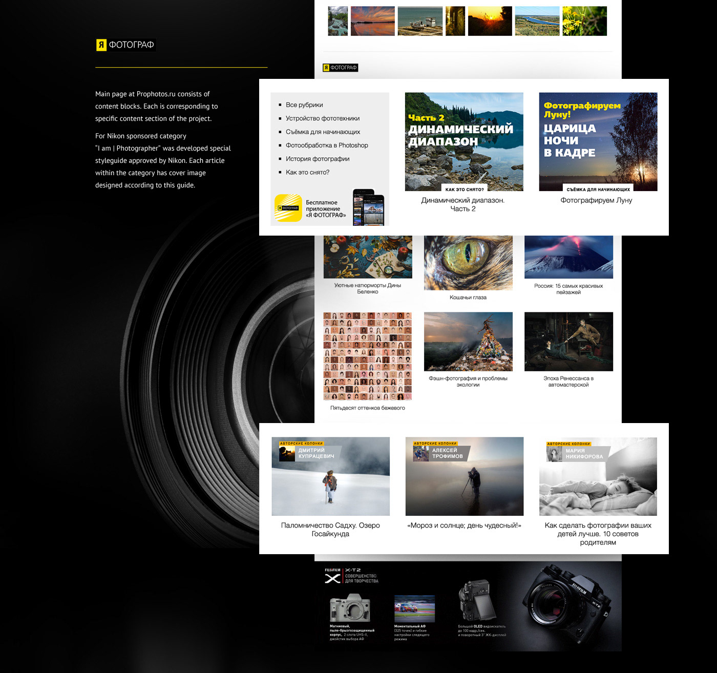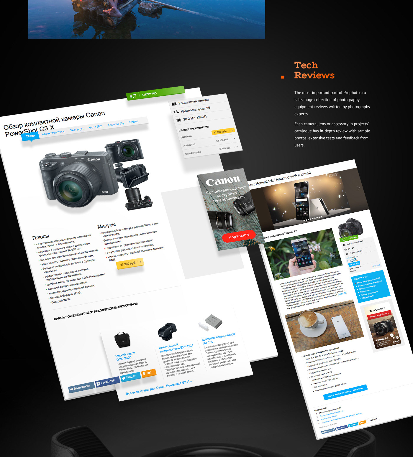 Prophotos.ru is a leading online media publishing exclusive reviews, lessons and news about photography and gear. My work for this project included complete re-design, UX improvements, art direction and consulting.